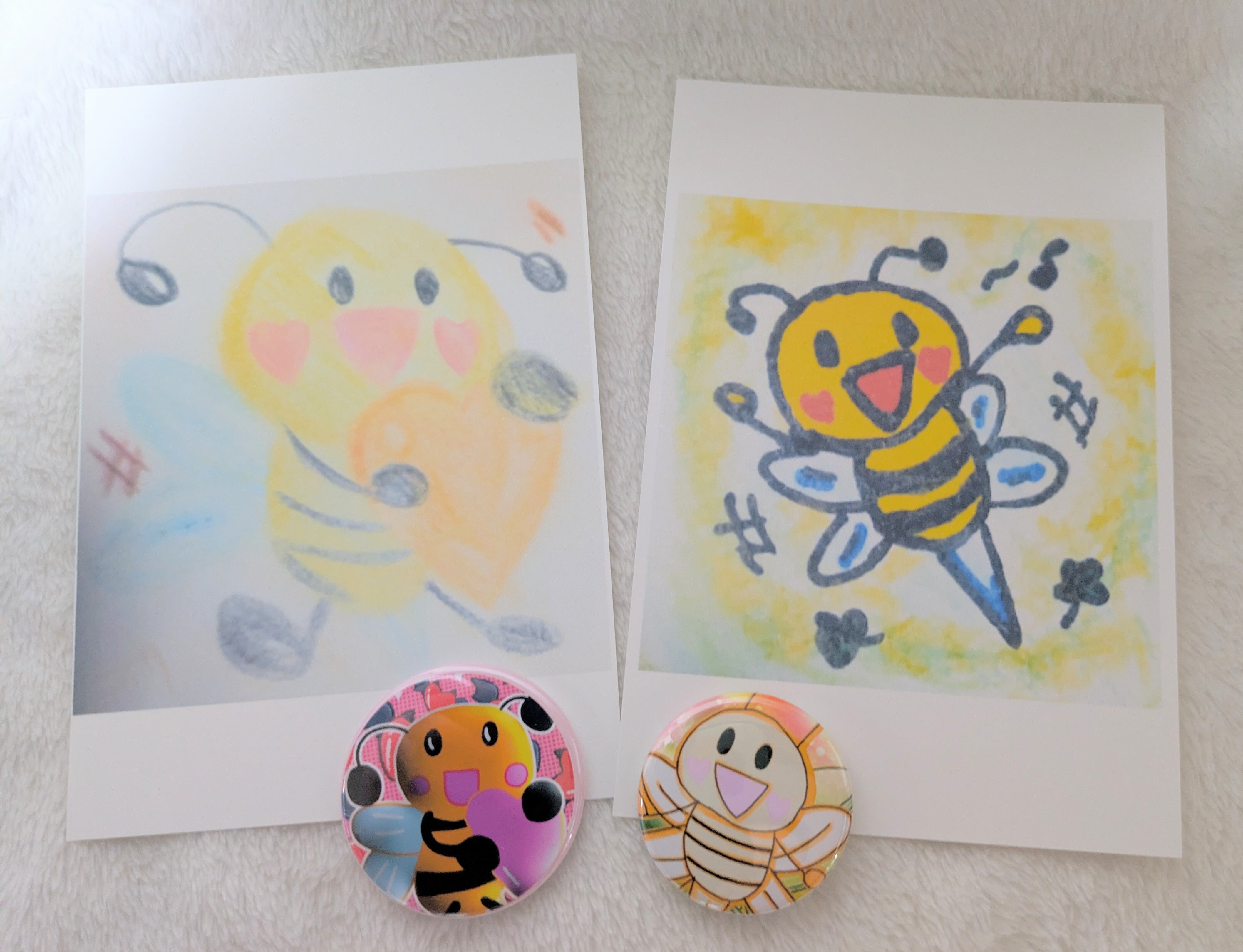 みつばちのはっちのポストカード2枚とコラボバッジ2個のセットです。